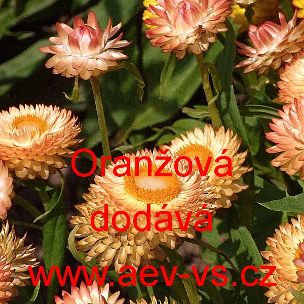 Popis: Smil listenatý, slaměnka (Helichrysum bracteatum) Oranžová (v odstínech) je asi 80 centimetrů vysoká jednoletá květina. Dá se použít i k sušení, do zimních aranžmá.